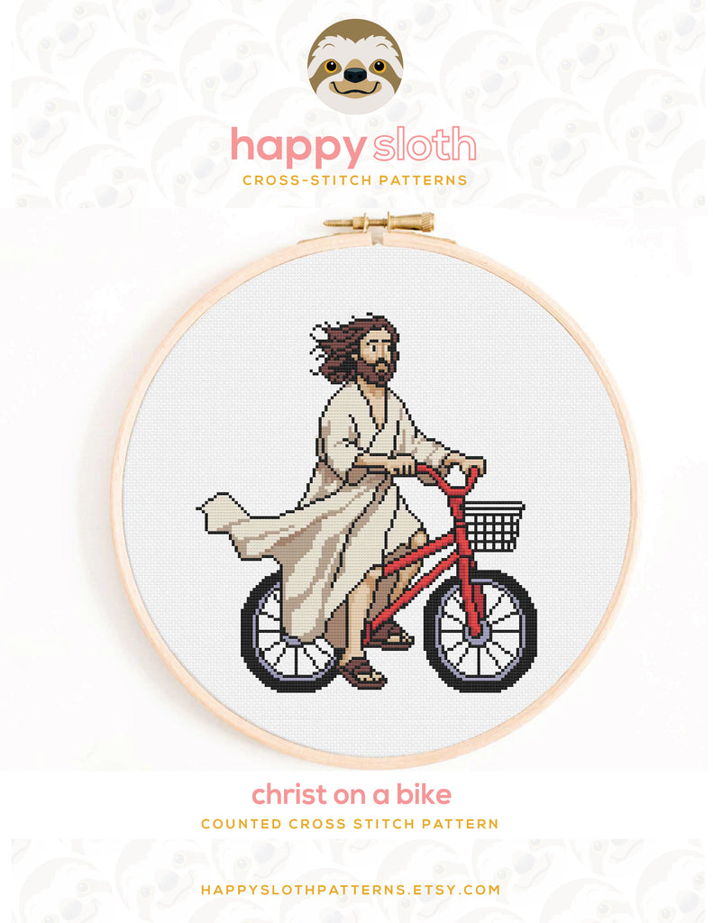 Christ on a Bike Cross Stitch Pattern