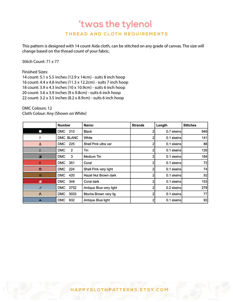 'Twas the Tylenol, M'lord Cross Stitch Pattern (Copy)